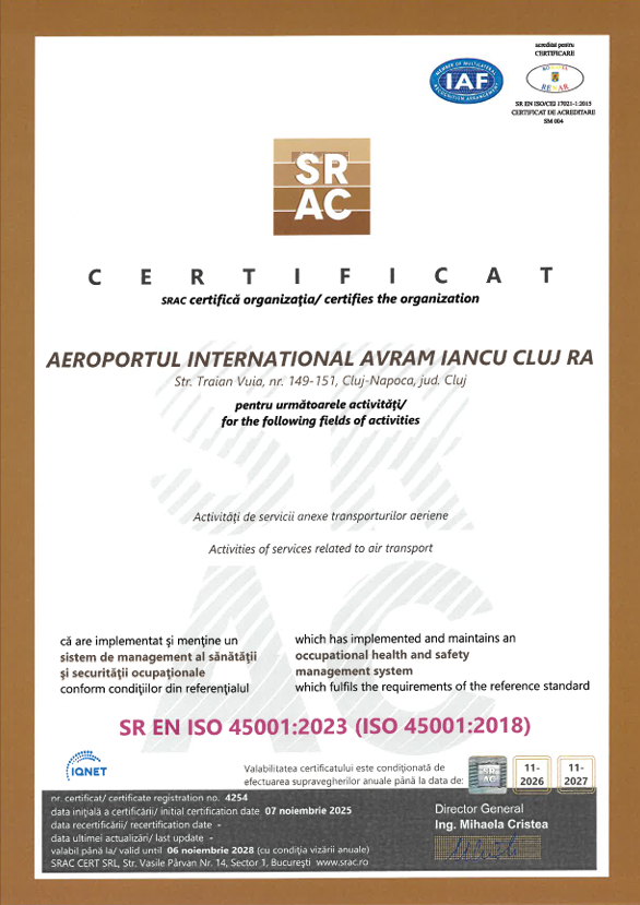 Instituția Prefectului Judetul Cluj a acordat Aeroportului Internațional „Avram Iancu” Cluj